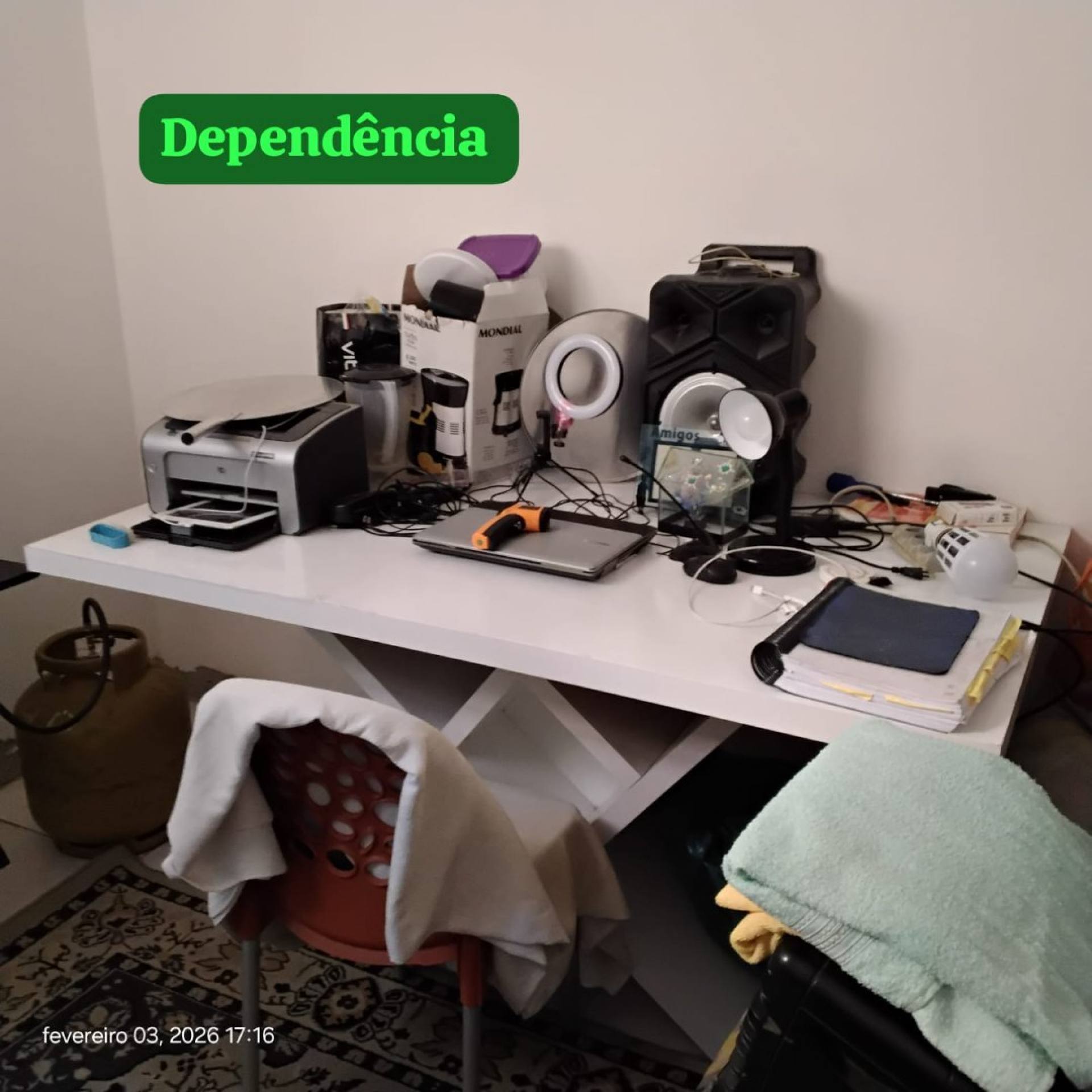 Condomínio no valor de R$ 550, já com água inclusa. Atualmente há uma taxa extra em andamento (aproximadamente R$ 200), referente à modernização da rede elétrica para sistema bifásico (110/220), com 14 de 24 parcelas já pagas.